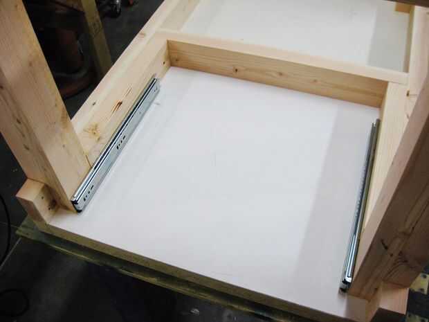 Guías de cajón se instalaron luego en el cajón, así como la parte inferior del carro.