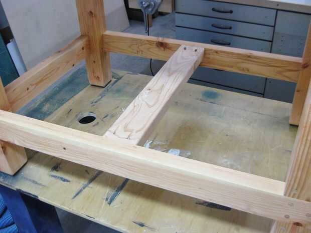 He añadido un refuerzo por el medio con tornillos de bolsillo, y dos piezas de MDF de 1/4" fueron cortadas como necesario y atornillada en lugar.