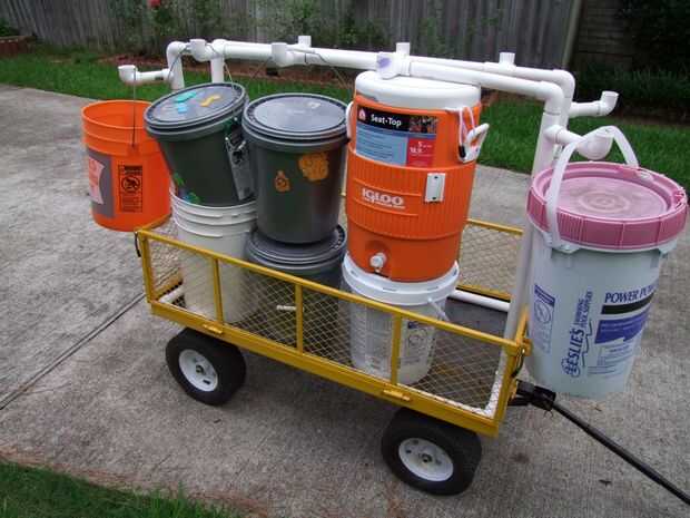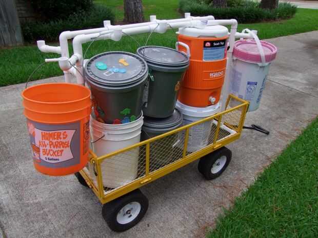 muchos campamento de Cub Scout / residente campamentos recomienda a los campistas y el personal para llevar los cubos para asientos y naves de almacenamiento. Este tutorial está diseñado para guiarte a través de cómo crear su propio rack de transporte 16 cubo para su carro de jardín.