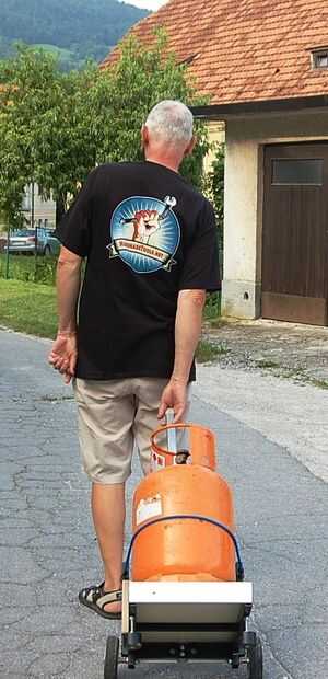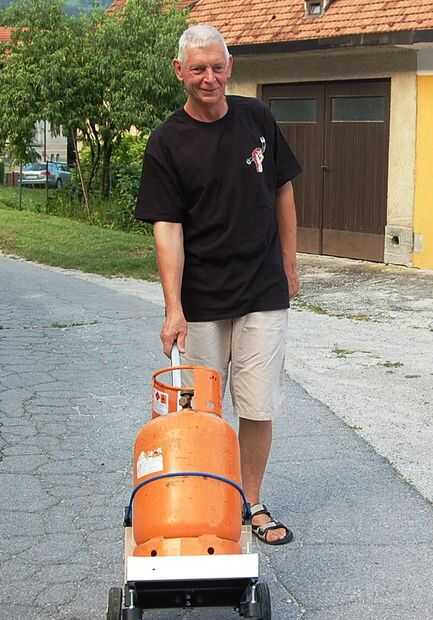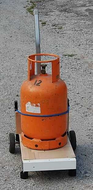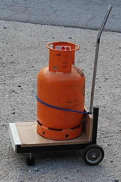 Carro está listo para el transporte. La bomba de gas todavía fijada por cinta elástica.