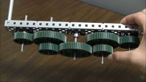 Engranaje compuesto es una forma sencilla de aumentar la relación de transmisión sin utilizar engranajes masivos. En este ejemplo, nos va preparando para la velocidad. Una relación de engranajes de velocidad típico va de grande a pequeño. Esto significa que una rotación de los equipos grandes serán muchos para el engranaje pequeño. Esto hará que el pequeño engranaje hacer girar muy rápido. Si otro engranaje se puso en el mismo eje que el pequeño, el centro se gira a la misma velocidad. Esto funciona porque el pequeño engranaje hace girar el eje que se une a la que hace que el engranaje más grande en el mismo eje para girar a la misma velocidad de rotación. La única desventaja de tener una gran cantidad de velocidad es la reducción del esfuerzo de torsión que hará que el robot no mover o arrancar lentamente.