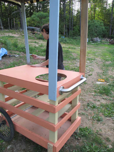 Aquí está mi hija pintando la estructura del toldo. Verse bien!