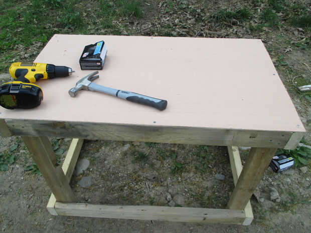 Os adjunto los paneles al bastidor con clavos de techar y tornillos pequeños para madera.