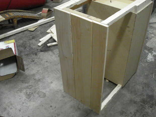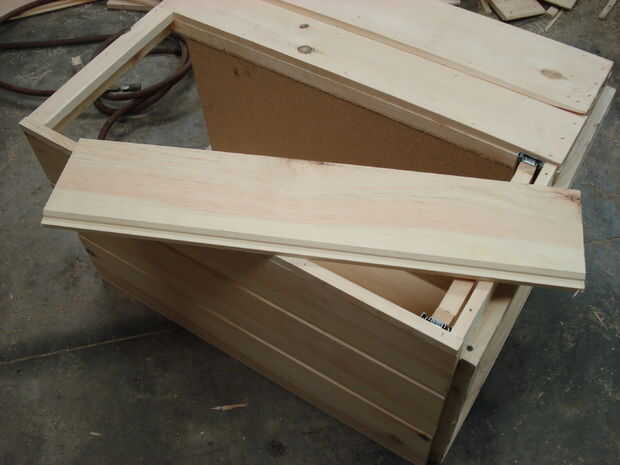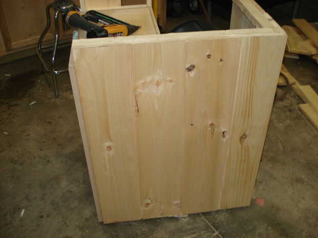 Paso (1) que cortar algunas piezas de la nave tablas de vuelta como los lados y espalda 33'' largo. Entonces pin clavó en el bastidor.