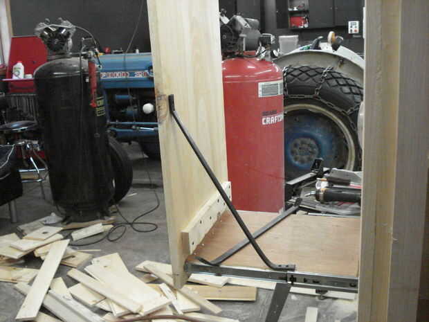 paso (2) tomé 2 piezas de 1/4 '' por 1'' de acero plano de doblar los ángulos apropiados, pre perforados en ambos extremos e instalado en la parte posterior de la puerta y el marco regulador...