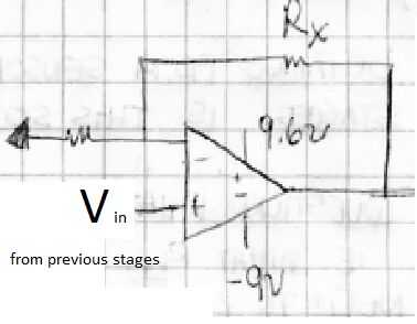 Esta etapa tiene que ser una amplificación no invertir. Queremos que todas nuestras señales de ahora en adelante a ser positivo. El diagrama muestra el resistor Rx (utilicé 47 k ohmios) con la etiqueta. Creo que sería mejor utilizar una resistencia variable y ser capaz de usar para ajustar la ganancia. Como puede verse en foto del siguiente paso, yo no lo hizo en la primera iteración. La resistencia a tierra en la entrada (-) del amplificador op es una 1 k ohmios. Tuve que ajustar esto para cada canal, y por qué sugiero una resistencia variable.