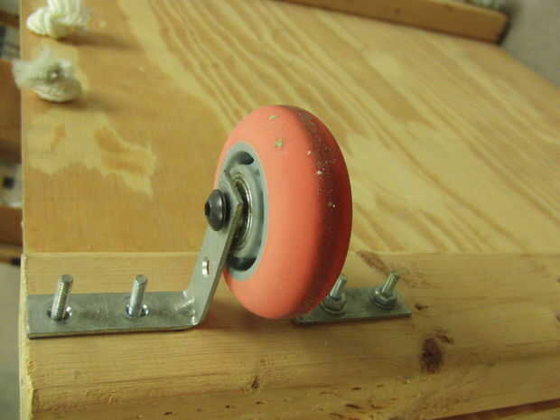 Utilice los soportes de ángulo recto para sujetar las ruedas a la carreta en la 2 x 4 como se muestra en la foto.