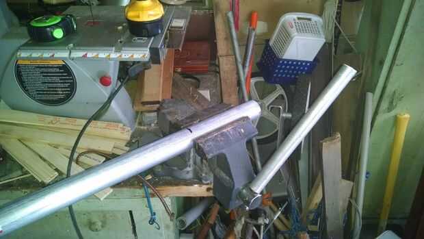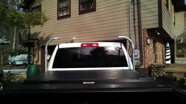 Por lo que vas a cortar el 10' tubos para que usted obtenga dos partes acerca de 18-24" largo para entrar en los agujeros de la estaca del el carro y que deja una sección de 6-7' ir horizontalmente a través de la cama. Tendrás que medir usted mismo con nuestro carro. En la mía, era la profundidad del agujero juego 6", y la curva de la curva del codo era cerca de 12" (sea cual sea) así que encargo medí la longitud de la subida a ser exactamente lo que era necesario para que la barra horizontal saldria cerca de 2 "por encima de la línea del techo.