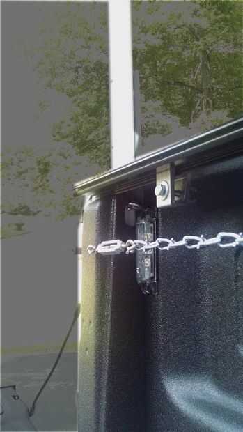 así que mis piezas verticales son un ajuste muy apretado, y eso es probablemente todo lo que realmente necesito, pero a 70mph todavía quiere este estante bloqueado para no volar. También quería que esa Asamblea sea realmente fácil de hacer. Ahora dentro de mi cama hay ya acceder a agujeros en los orificios del juego, e hice de ellos perforando un agujero a través de mi vertical piezas tal que el agujero era 5/8" grande y alineado con los anteriores cortes. Ahora he podido usar la 4" agujero armella como especie de una chaveta en las piezas verticales. De esta manera la rejilla no puede venir por los orificios de la estaca. No uso cualquier tuerca de estos pernos de mirilla.