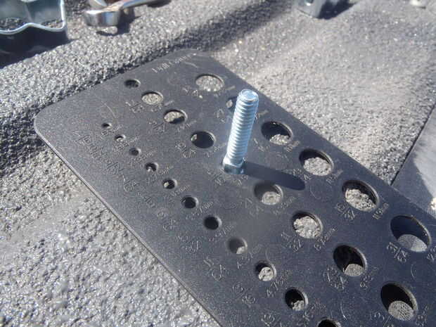 - Perfore el agujero del extremo de los collares #0 tal que la patilla cuadrada de la #2 aprieta los pernos de ajuste a través de él.