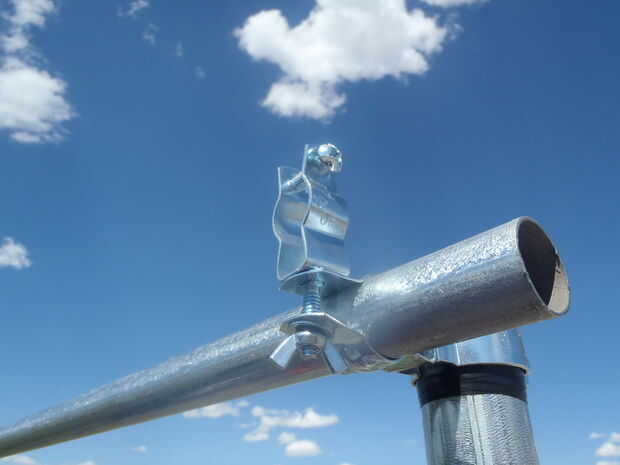 - Conectar los collares #0 en la parte superior de los collares #2: #2 perno de apriete >> collar #0 << #2 collar << arandela plana << tuerca mariposa