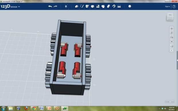 Para representar los motores que impulsarán a los engranajes, importado y modificado (sacado algunas partes de) el modelo de un brazo robótico (L01 brazo inferior por admin diseño) que encontré en la galería /