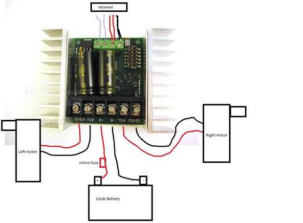 Utilizar los extremos de los conectores de servo para conectar el receptor de radio uno a ch1 y otro ch2 (o THR y STR) uso de mezcla en la radio.