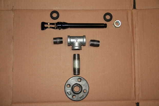 (2) 1/2" tubo de diámetro galvanizado, 1" de longitud (que la longitud real depende de cómo de apretado llave lo juntos y cuánto slop quiere.