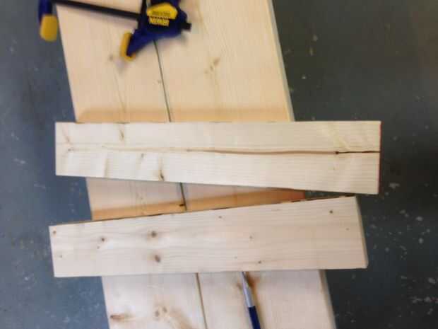 Corte el 2x4s apoyo a lo largo de los dos tableros de madera contrachapada.