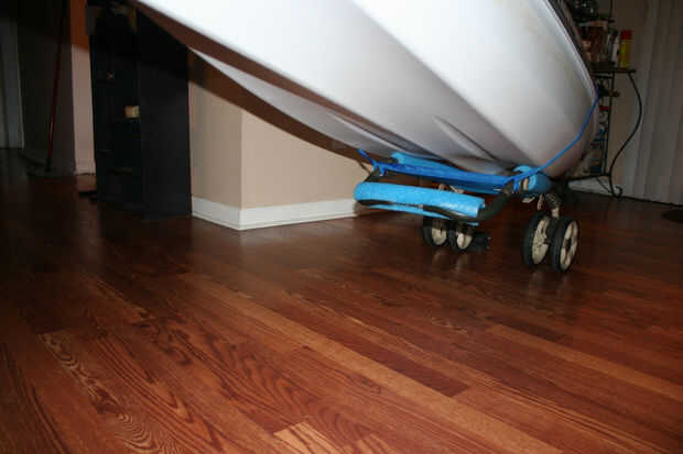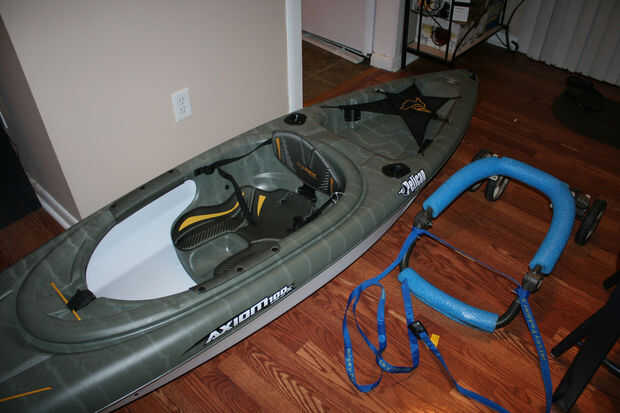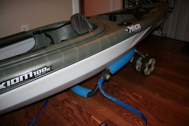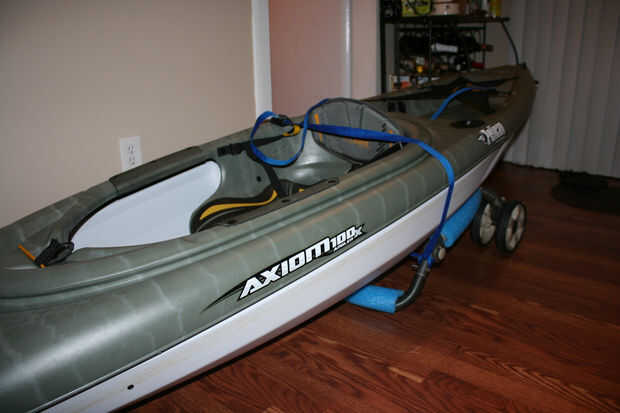Entonces envuelto una correa alrededor de las asas, poner el kayak en y apretar la correa. Ahora puedo levantar el kayak y rodar hasta el agua.