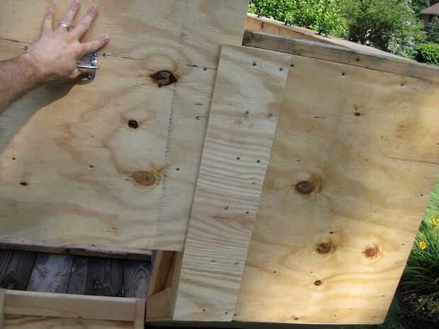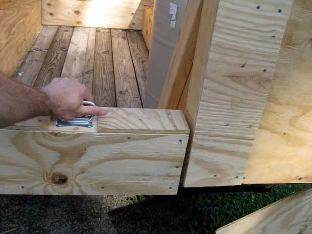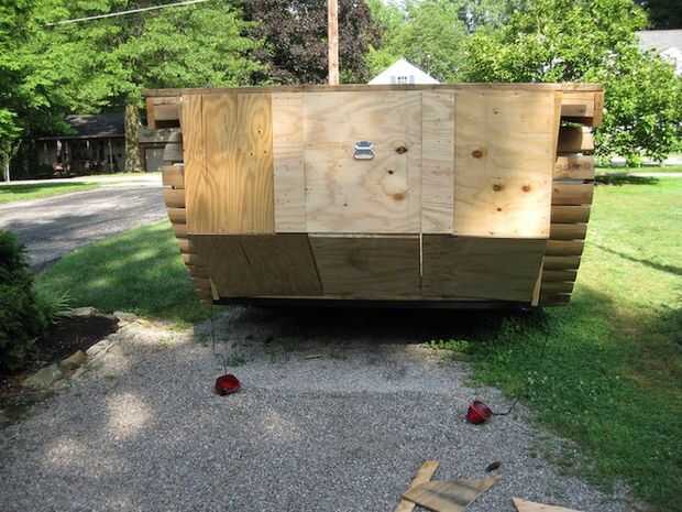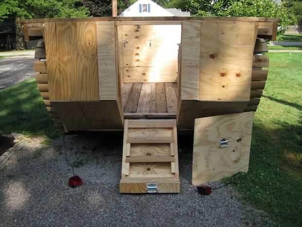La parte inferior fue unida a la carroza y con bisagras en la parte inferior. Fue construido con escalones en la parte posterior para permitir el fácil acceso a la carroza. La parte superior de la tenía un mango para recoger con. Usé dos bisagras resistentes para asegurarlo.