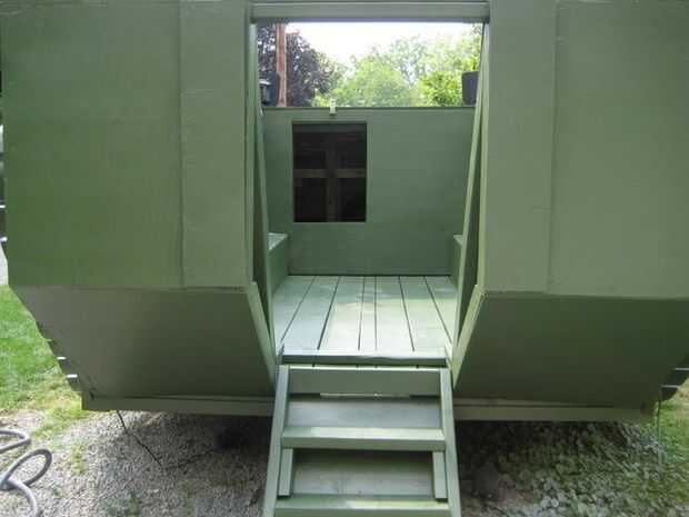 Luego poder lavadas el flotador todo para quitar la pintura restante que tenía tranparente p debajo de ella. El flotador entonces fue lijar completamente para quitar el grano levantado de la madera de la lavadora. Re pintado con latex exterior de Sherwin Williams y luego dado 3 capas de verde. Podrias decirme es madera contrachapada un poco pero ya no me importaba y no iba a arriesgar otra capa de nada. Clasifico en la mayoría de las grietas con masilla para pintar látex. Los bordes entonces parecía soldados al menos.