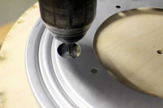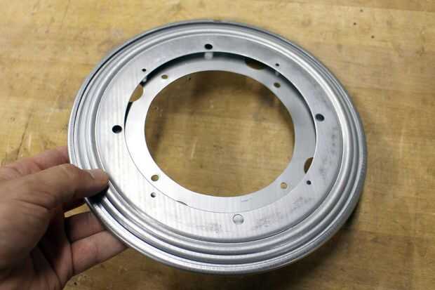 El cojinete de giro fue conectado en la parte inferior del carrusel y sujetado en su lugar con tornillos pequeños en el centro de la plataforma inferior.