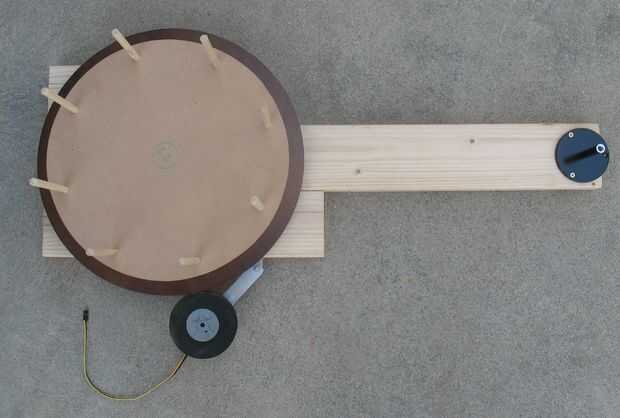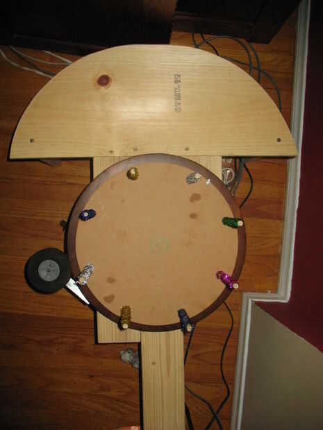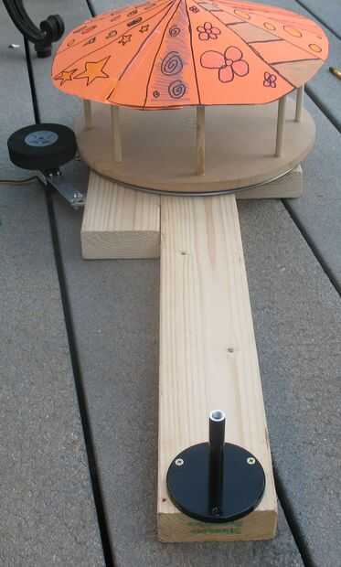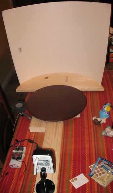 Puesto que el carrusel es visto desde una cámara web, hemos añadido una tabla curvada detrás para aferrarse una cartulina curvada con una escena de fondo. Hicimos la parte curva forma un pino de 1 x 10 y había atado con una grapa de 1 x 2.