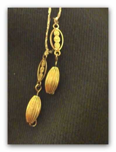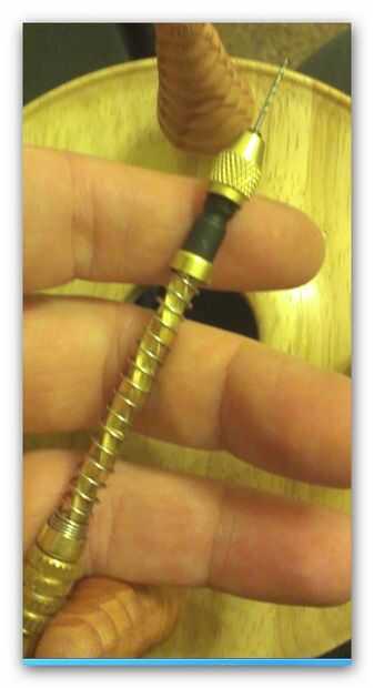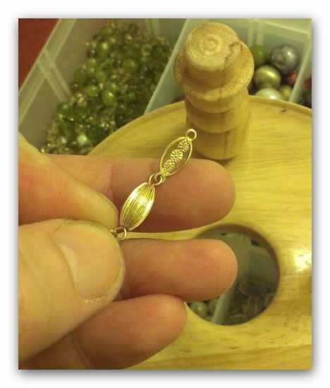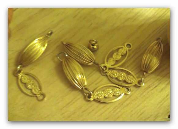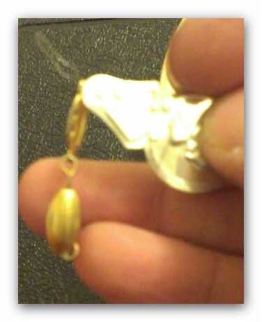 Ahora cortar algunos hilos de oro (tamaño) y adjuntarlo a la decoración de bolas ver foto 6 y una vez los anclajes de gancho dos de estas en el lugar - luego pasar los otros extremos a través del orificio en el eje.