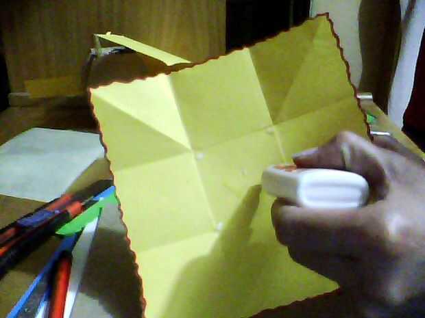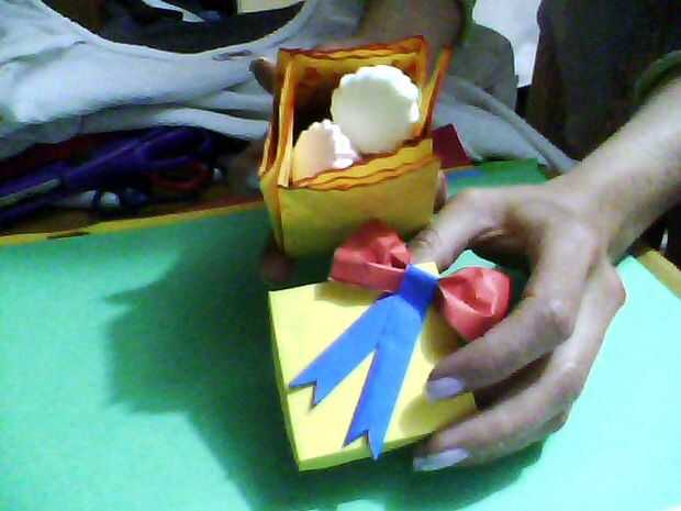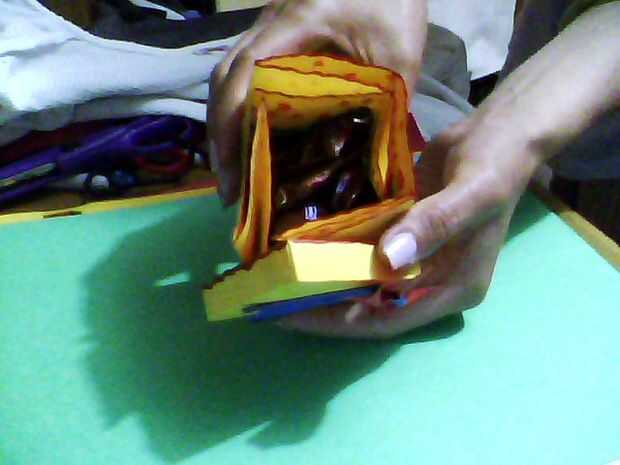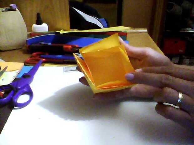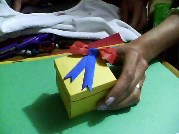 La caja se hace con un cuadrado de papel de 18 x 18 cms, y la parte superior es de 18 x 9 cms. No tienes que esperar unas vacaciones para dejar saber a su amada todo lo que siento, así que escribir un mensaje bonito y luego doblarla como un fil de caja de regalo con sus caramelos favoritos.