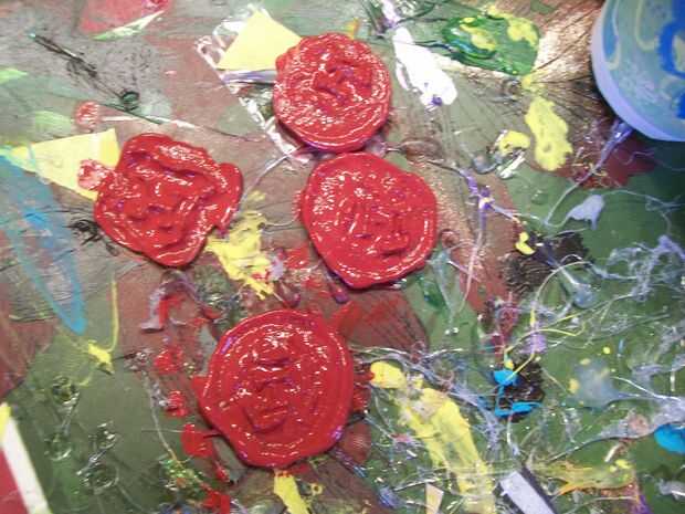 elegí un rojo oscuro para pintar mi sello, pero se puede utilizar cualquier color que desee.