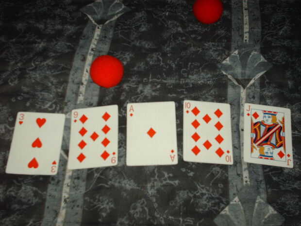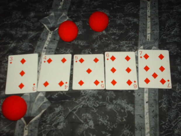 Rectas - Cinco cartas en secuencia, pero con diferentes trajes. Probabilidades 250/1