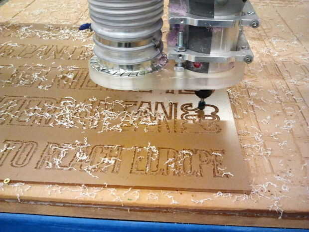 Importado el archivo de illustrator en Rhino5 y luego en Visual Mill para crear un camino para grabar en plexiglás. Si está utilizando una máquina de fresado, grabado es una mejor opción de corte. Permite guardar los datos en su tipografía sin el riesgo de romper el plexiglás. En caso de que usted realmente quiere cortar las formas, asegúrese de utilizar un lasercut.