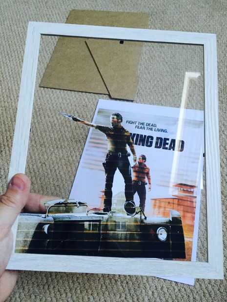 En este momento utiliza los clips negro de la primer foto para mantener el cristal solo sin el respaldo y entonces se alinearon los 2 cuadros con las imágenes