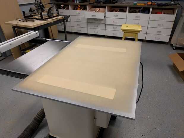 c. Rocíe los bordes del tablero y el cartel con pintura en aerosol Rust-Oleum "Acero oscuro".