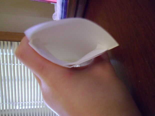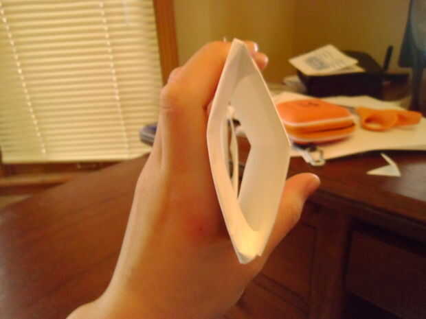 En el lado de la billetera, ves hay dos aberturas y dos aletas.  Tomar la tapa frontal (el primero de ellos que está al frente) y doblar en la segunda apertura.  Tomar la otra aleta y doblar en la primera apertura.  Repita en el otro lado de la cartera.  Ahora, usted puede poner tarjetas de regalo, dinero, etc. para nadie!