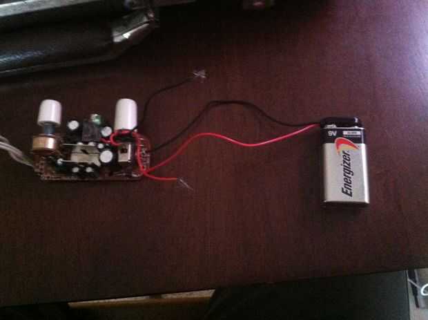 Conecte la batería de 9 voltios para la toma de corriente en los interiores de altavoz de ordenador viejo. Asegúrese de giro esta muy bien de lo contrario podría venir suelto.