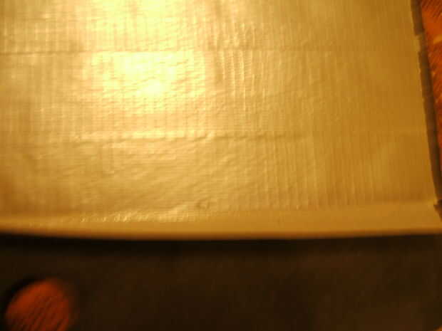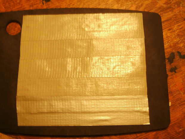 Voltear la hoja de la cinta adhesiva y cubrir ese lado en cinta a. En 8.5" pegarse un pedazo de cinta del conducto que está a medio camino en la hoja y medio apagado. Repita en el otro lado. Añada las etiquetas.
