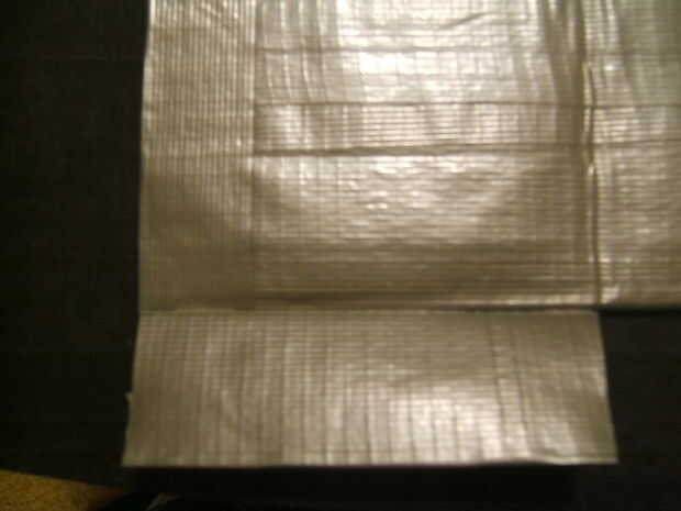 Tomar las rayas y los puso junto con cerca de 1/5 de una tira que se pega hacia fuera en ambos lados. Doble una de las pestañas y attatch otro el bottem de la cartera. Repita, pero subiendo un poco más los bolsillos. Cortar un pice de la cinta por la mitad y sellar el extremo de los bolsillos.