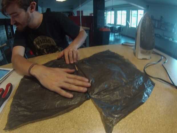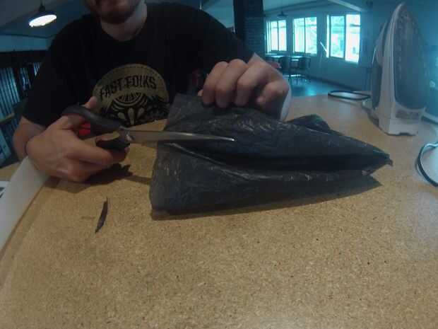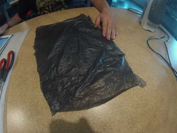 Un una bolsa de plástico quitarle las orejas (dependiendo del tipo de bolsa) y recortarla por los dos lados de los extremos izquierdo y derecho.