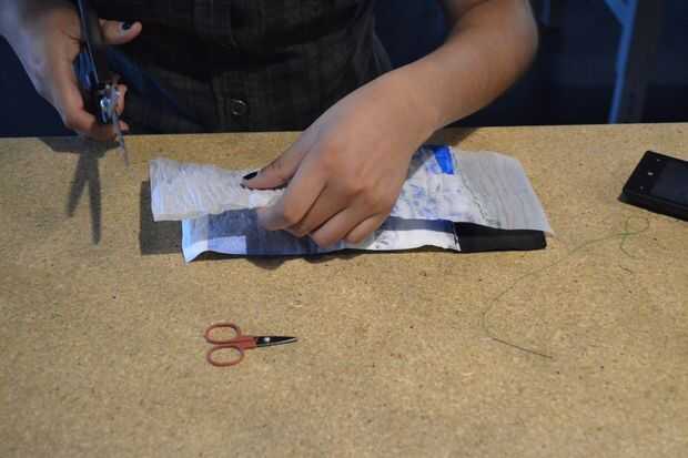 El primer plástico de los pequeños es el que va a contener las tarjetas, por lo tanto vamos a cortar con el cortador conforme al molde de la imagen que ya teníamos previamente, esto lo vemos en la quinta foto. Listo esto procederemos a coser esta parte y tambien las demás. Los tres trozos quedarán cosidos una una cara como los vemos en la octava foto.