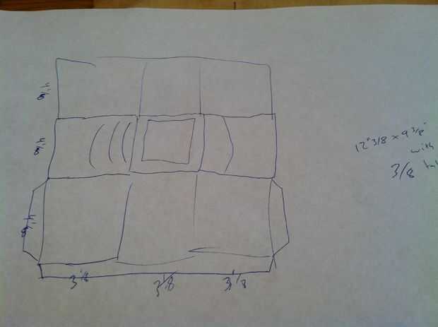 Porque quería una cartera Tri-fold.  Que utilizan dimensiones de mi cartera anterior y promediaron con dimensiones de la cartera de cuero.  Ahora no tengo mucha experiencia de costura, pero la idea es tener espacio suficiente para lo que usted pone en, además de área de costura.  Así las cosas obviamente serán un poco más grandes.  La foto es mi diseño dibujado mano rápida con dimensiones.