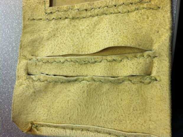 También cosido los bolsillos tarjeta para rigidizar las ranuras. Para doblar todo en su lugar por lo que quedó. Tomé una toalla húmeda y secó el área a ser doblado. Luego doblar y poner un peso de algún tipo en la parte superior. Que este siente tal vez 5 minutos. Trabajó muy bien.