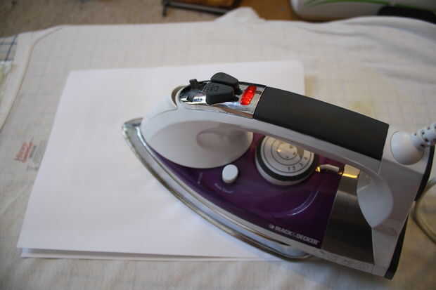 Ejecutar la plancha sobre el papel un par de veces, no se siente el hierro en el papel por mucho tiempo, esto puede resultar en la quema o deformar el plástico.