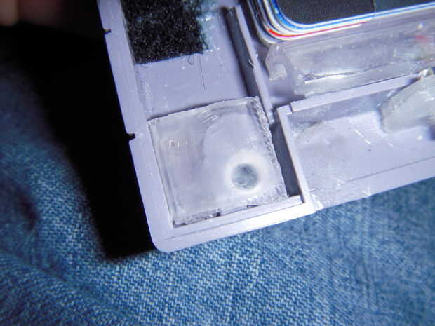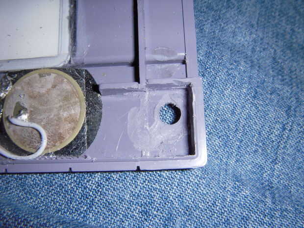 Usar las brocas de restos de plástico y pegamento para nivelar los espacios debajo de su zona clave usb y alrededor de su área de conmutador en la placa trasera. Pequeñas piezas para apilar al lado del interruptor y recuadro plástico y luego una pieza plana sobre cada una para una superficie plana. Asegúrese de que están a nivel con el labio/borde interior y no la parte superior del borde. Que estas construcciones en seco.