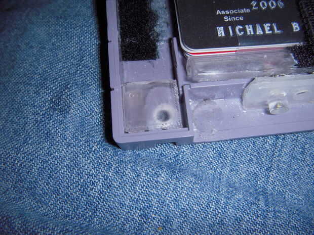 Agregue una cantidad abundante de su gorila impacto resistente pegamento al punto áspero en el cartucho y luego pegue su clip en él lado rugoso al lado áspero. Déjalo secar un rato y luego añade más pegamento a los bordes para que realmente se queda en.