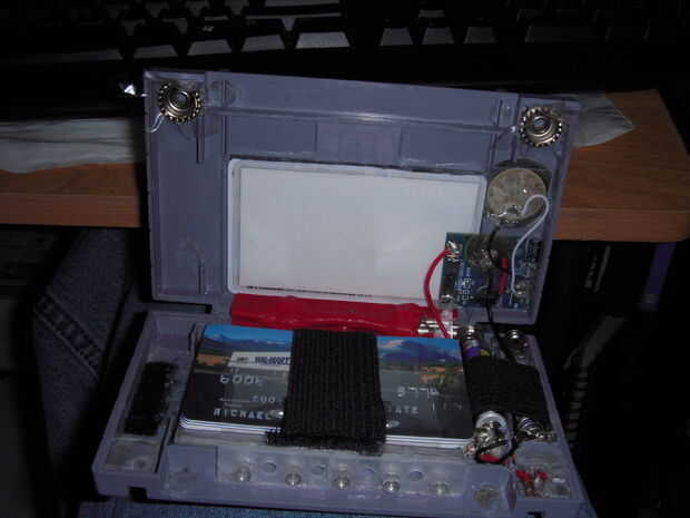 Una vez que los broches no se mueven, abrir la caja, desmontar los broches de presión, entonces algunos plástico cosa (como decir de una bolsa de sandwich) y junte los broches de presión. Asegúrese de que esté suficientemente cerosa que el pegamento no se adhiere a él. Agregar el pegamento donde tuvimos los broches de presión en el lado de la placa frontal luego presione los broches de presión en él hasta que el pegamento se seca. Seguir añadiendo pegamento alrededor de la presión contra la placa frontal hasta que estés seguro de que es cerca de inmueble. (Nota, yo no podía cubrir completamente sobre el interruptor con plexiglás. Y mis broches tienen un área abierta. Si ustedes hacen demasiado y tenía este mismo problema con el conmutador, tienen su área abierta sobre el conmutador. por lo que cubre por encima de los conectores del interruptor extendido. Entonces antes de agregar el pegamento, llene todas las grietas con pegamento caliente, asegurándose de que no se en las superficies el pegamento serán pegarse a.)