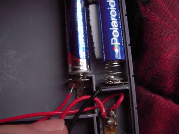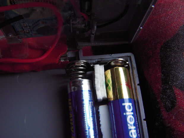 Tomar las dos baterías, coloque uno en el lado derecho completo y coloque uno en el lugar donde la pared solía ser. tomar la otra batería y presione suavemente el extremo negativo contra el muelle. Si tienes suficiente espacio frente a ese pedazo que lo dejó para que el final positivo a pegar delante o detrás de la esencia, eres bueno. Si no es dremel el resto de esa pared hasta que eres incluso con la pared horizontal izquierda y presione suavemente su extremo positivo contra la batería. Marca el lugar detrás de él, del pegamento estupendo de una pieza de plástico a la pared en la parte de atrás de esa línea y contra él. Deje que el pegamento fijar.
