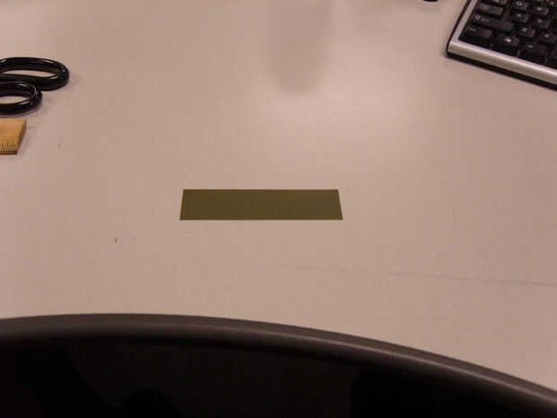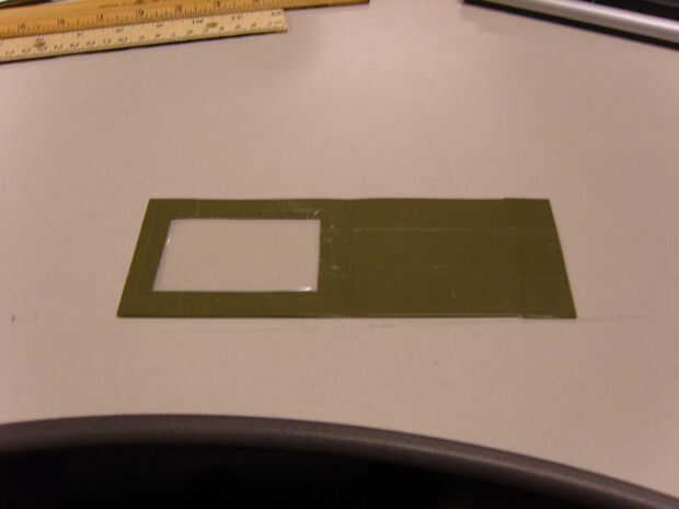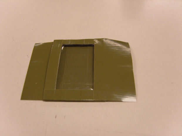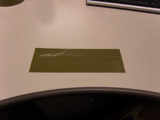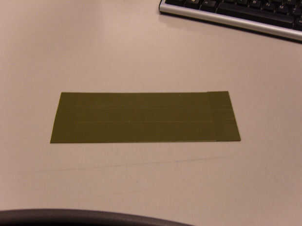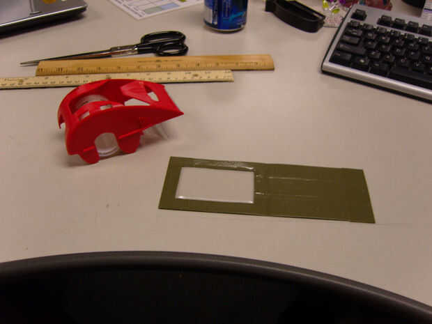 7) cortar un trozo de cinta adhesiva que es 3,75" de largo y luego corte longitudinalmente a un ancho de 1 1/16". (Foto 5)