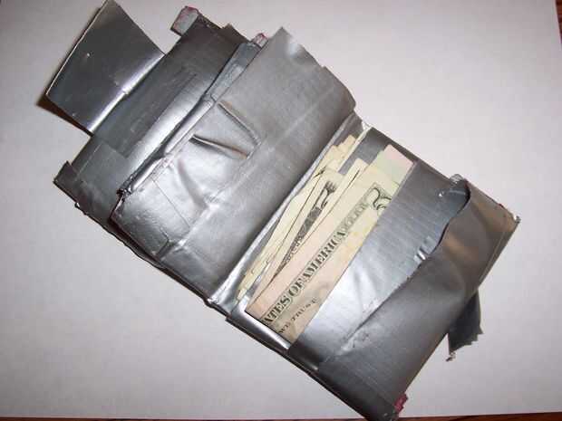 bueno, sé que se pasa a ser 5.000 cartera de cinta de conducto Instructables, así que pensé: ¿por qué hacer uno? Pero mi billetera original de cinta de conducto hice (mi primer uno cada vez), fue hecha hace más de tres años nunca reparado, y sólo unos pequeños rasgones en el bolsillo portátil/tarjeta (que en realidad hizo más fácil de usar) y todavía mantienen un cuaderno de cinta del conducto y mis ahorros de vida $500 en él.