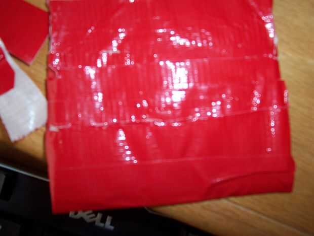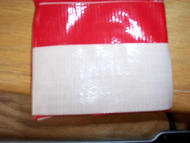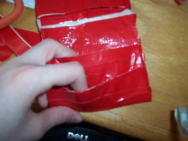 La parte superior se hace de dos tiras de cinta adhesiva para conductos (algunos superpuesto) de la misma manera como el bolsillo de cambio. El inferior se hace justo en la parte superior de la primera y hecho de una tira.