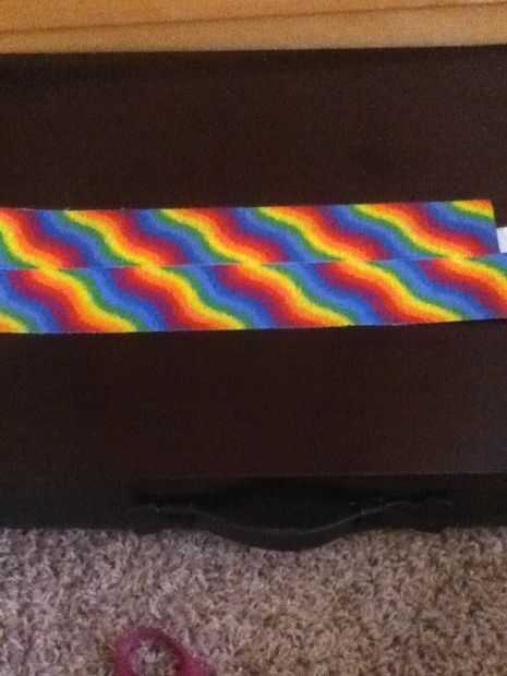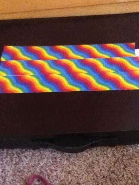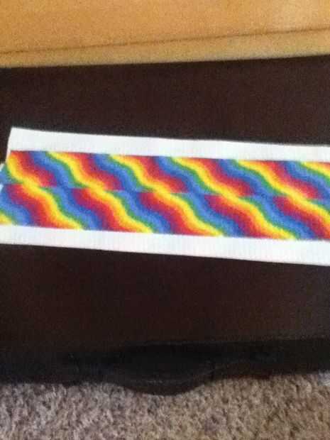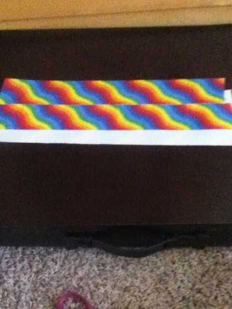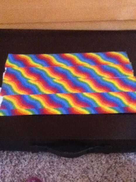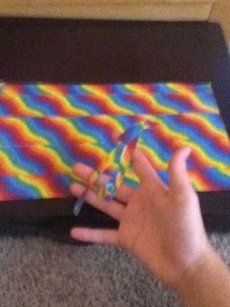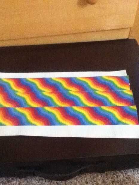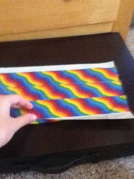Cosas que necesitará: al menos 2 rollos de distinto color del conducto cinta y un cuchillo del exacto y tabla de cortar. (o tijeras)Paso 1: Corte 8inch dos pedazos de cinta adhesiva para conductos,Paso 2: Girar ellos lado pegajoso hacia arriba.Paso 3