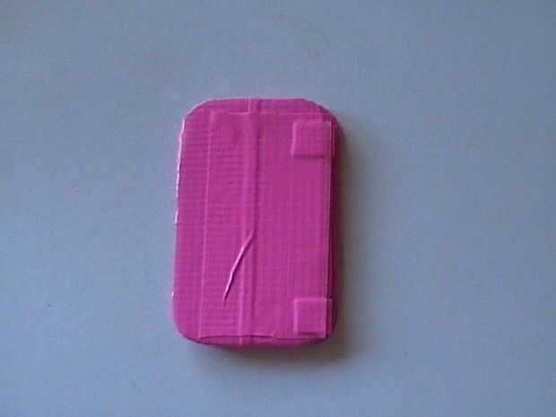 Por último, uso un trozo de cinta para sujetar la correa termina en la parte posterior de la tarjeta en la parte superior.
