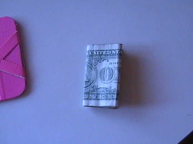 Conseguir un dólar y abrir su billetera y ponerlo en y cerrar el monedero.